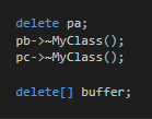 저 buffer는 delete[ ]로 해제가 가능하다.