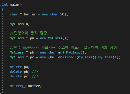 객체와 함께 사용하는 위치지정new를 사용하는 경우 주의할 것이 있다.