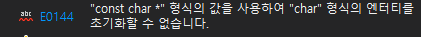 모두 대입하는 문자열 상수의 자료형[ const char * ]과 맞지 않다