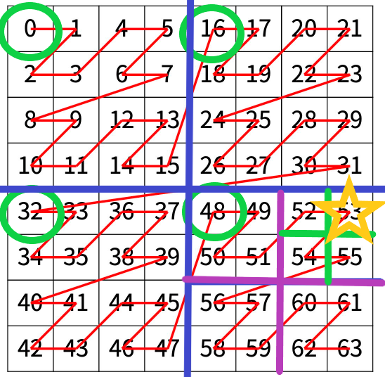 return "2^n * 2^n인 사각형에서 최대로 가질수 있는 수" + func (n - 1, x, y)