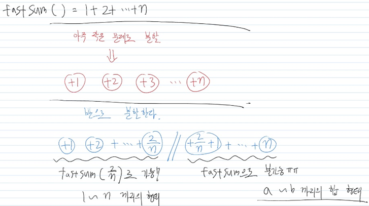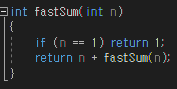 이를 더해보면 n + fastSum(n - 1) 로 계산이 가능하다.