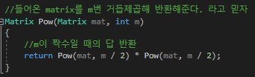 내가 작성한 짝수일때 pow(A, m/2) * pow(A, m/2)와 같은 경우다.