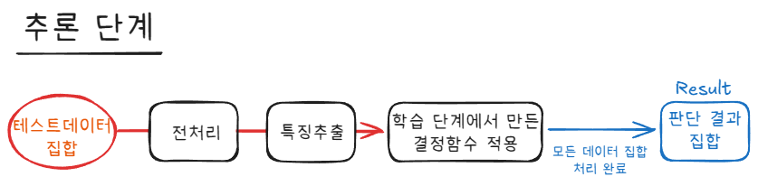 추론단계 : 학습단계에서 얻은 최적화된 결정 함수를 사용해 실제 입력에 대한 결과를 예측하는 단계 (실사용 단계)