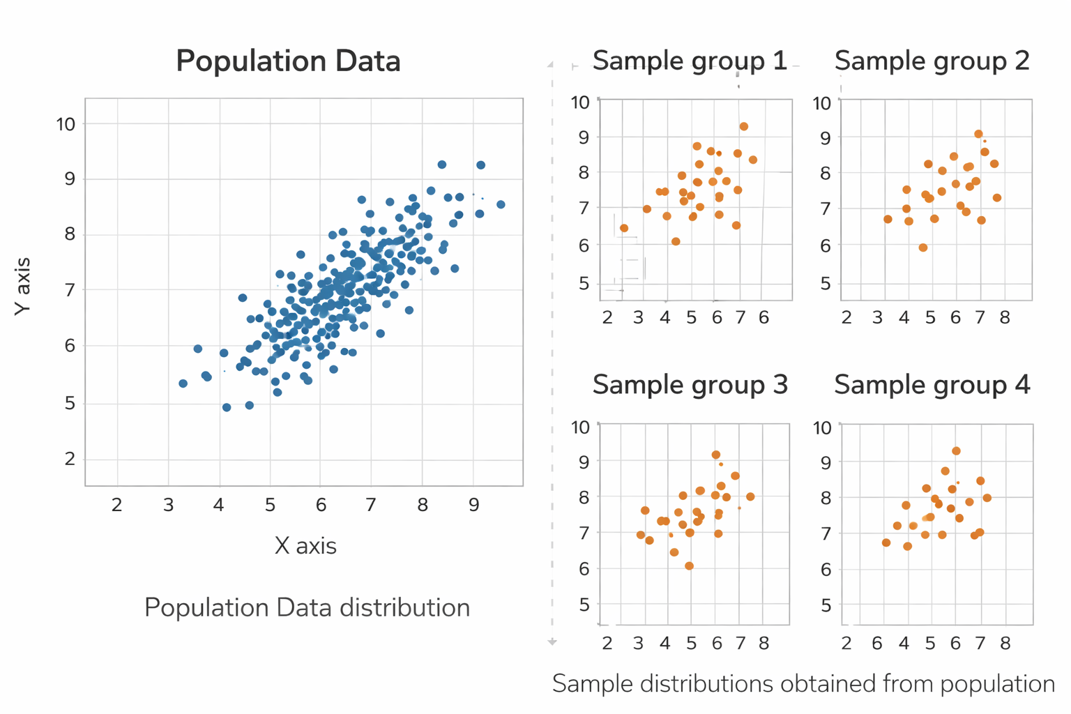 모집단과 4개의 표본 집합