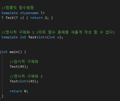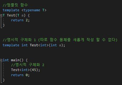 명시적 구체화는 원본 코드 그대로의 특정 자료형에 대한 함수 정의를 만들라는 것이다