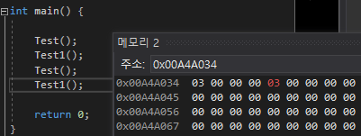 정적지역변수는 선언 부분이 계속 나와도 이미 선언이 되어있으면