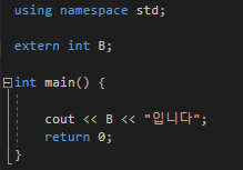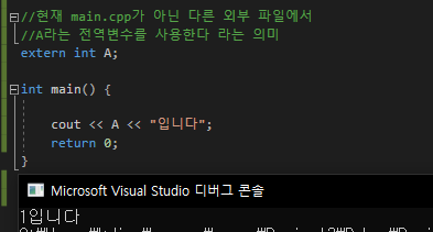 extern을 사용해 위에 있었던 Include.cpp파일의 전역변수 A를 사용했다
