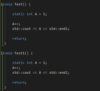 스코프 안에서 사용 할 경우 - 변수가 정적 기억 존속 시간을 가진다는 뜻