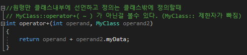 그렇기 때문에 저 operator+(int, MyClass)가 MyClass의 멤버함수로가 아닌 전역적으로 사용될 수 있는 것이다.